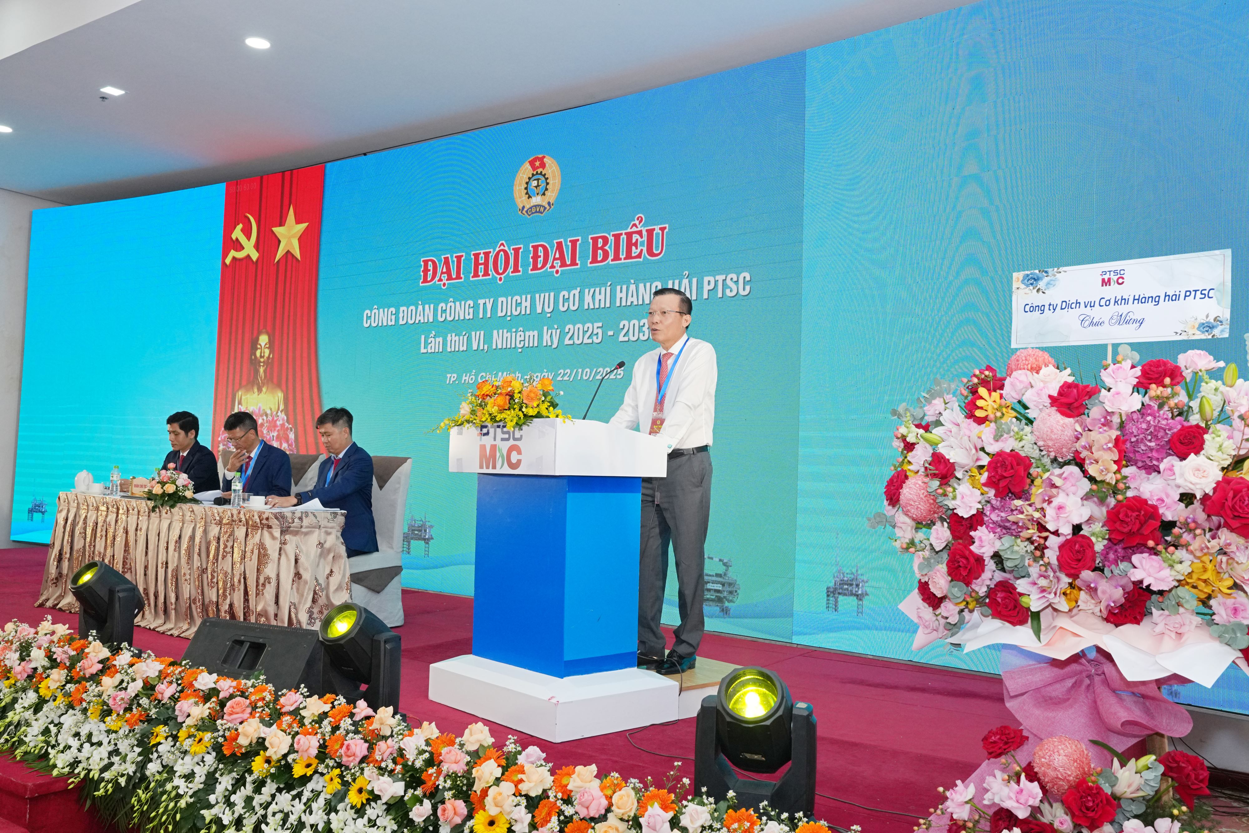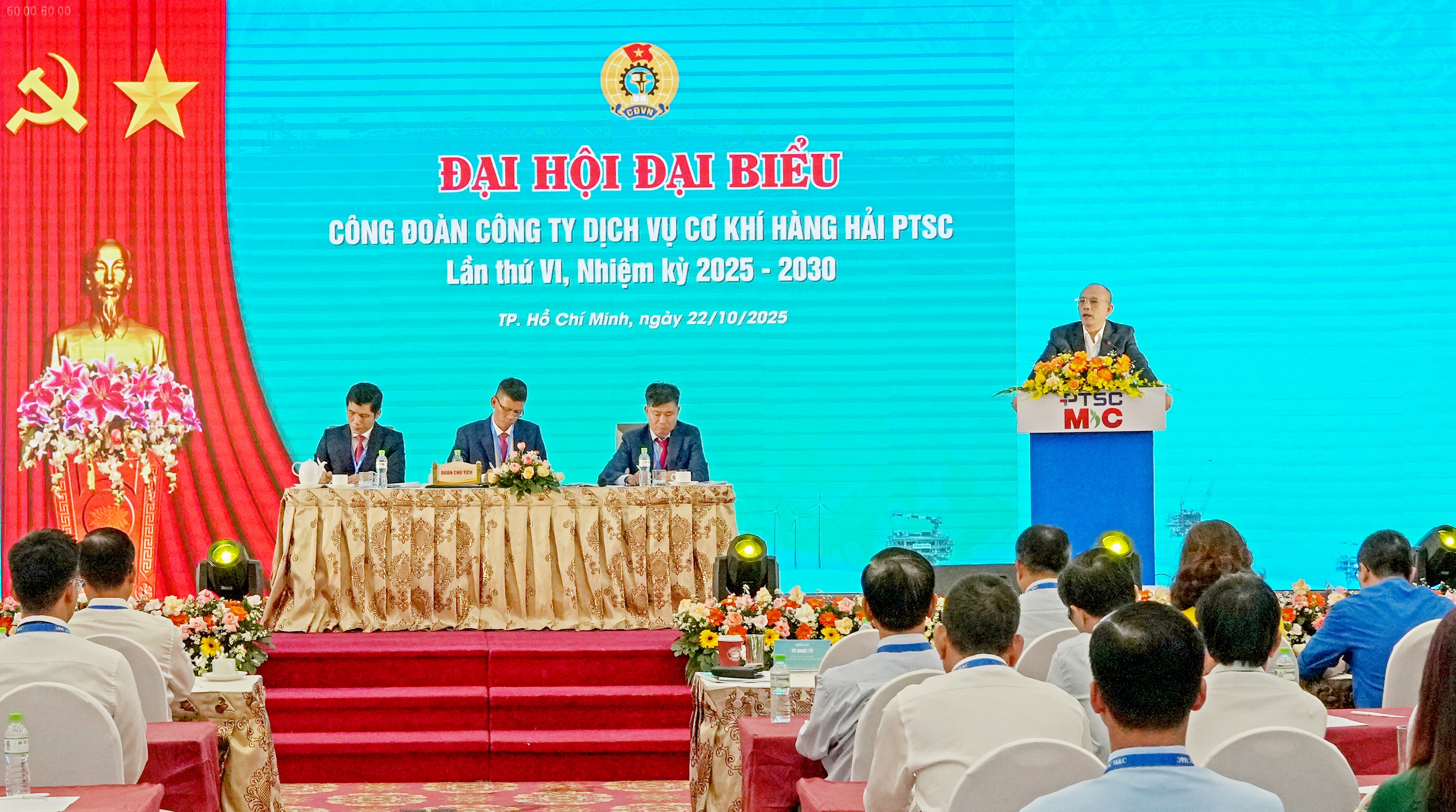 Ngày 22/10/2025, tại Hội trường Khách sạn Dầu khí PTSC, Đại hội đại biểu Công đoàn Công ty Dịch vụ Cơ khí Hàng hải PTSC (PTSC M&C) nhiệm kỳ 2025 – 2030 đã diễn ra trong không khí trang trọng, dân chủ và đoàn kết. Đại hội là sự kiện chính trị quan trọng, đánh dấu bước phát triển mới của tổ chức Công đoàn trong hành trình đồng hành cùng sự phát triển nhanh và bền vững của Công ty.