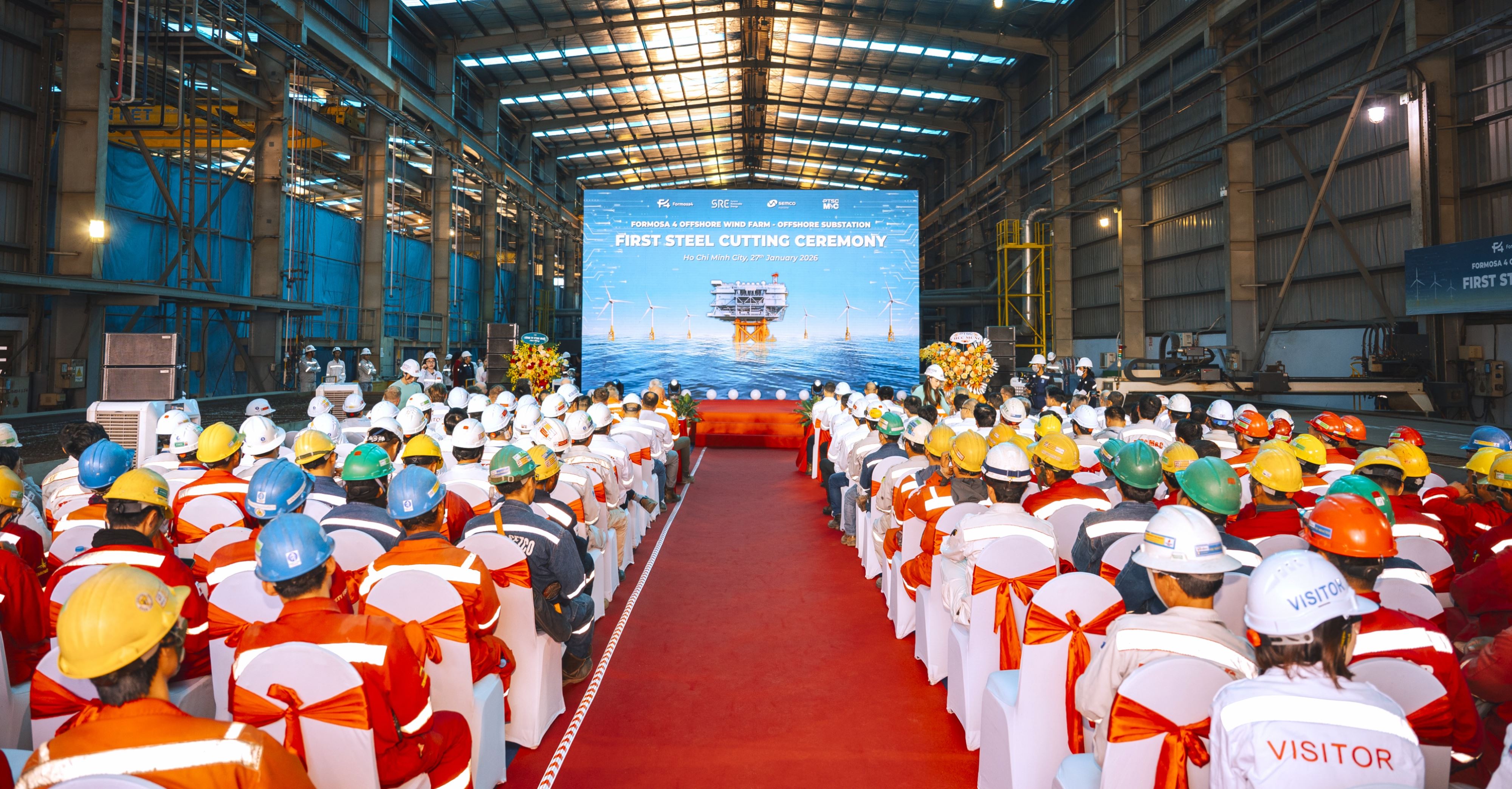 The consortium between Semco Maritime (Denmark) and PTSC Mechanical & Construction (PTSC M&C, Vietnam) has successfully held the First-Cut Ceremony for the Formosa 4 Offshore Substation (OSS) Project at PTSC M&C’s fabrication yard in Vung Tau, Vietnam. The ceremony marks a significant milestone, initiating the fabrication phase of the offshore substation platform.
